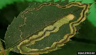 | De mijn van een bruine rozenmineermot | ||||||||||||
