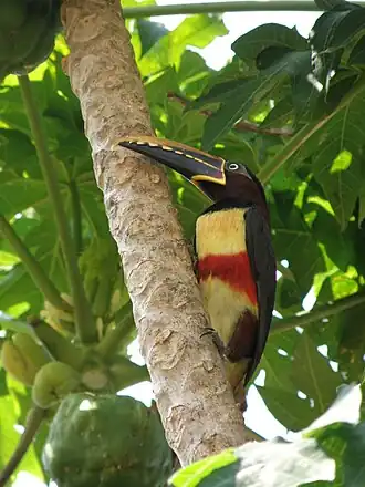 De bruinoorarassari (Pteroglossus castanotis) is een vogel uit de familie Toekans (Ramphastidae).