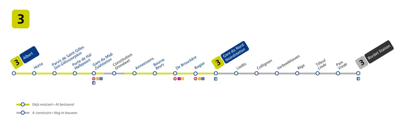 - ↑ Beliris suspend subitement le projet de métro 3, L'Echo, 23 mei 2023