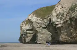 130 meter van de Bulbjerg steekt de stomp van de voormalige rots "Skarreklit" uit de zee. Ooit maakte deze rotssectie deel uit van het vasteland, maar door zijn plaats in de branding is deze verbinding in de prehistorie reeds weggeërodeerd. Het zachte kalksteen van de rots is met het verloop van de tijd eveneens door erosie verdwenen, maar met zijn kern van vuursteen kon de rots de kracht van de golven weerstaan. De vrijstaande rotspunt kende een hoogte van 16 meter, tot hij instortte tijdens een herfststorm in de nacht van 19 september 1978. Volgens een oude legende zou de val van de rots het einde van de wereld markeren.