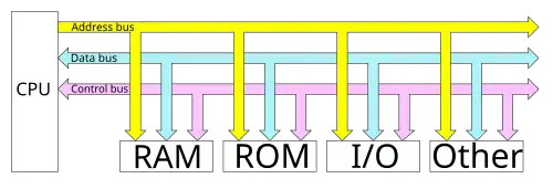 Een microprocessor communiceert met het geheugen via de bus. Deze bus bestaat uit een adresbus, een databus en een besturingsbus of control bus. Bij de oudere microprocessors (bijvoorbeeld de 8080) heeft de adresbus meestal zestien lijnen en de databus acht. Bij moderne chips zijn dat er veel meer.