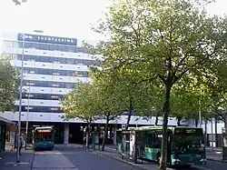 Het busstation Marnixstraat/Elandsgracht in 2014, met links een bus van lijn 145, die hier tot eind 2015 eindpunt had.