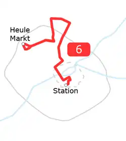 Buslijn 6 in Kortrijk verbindt de eindhaltes Station Kortrijk en Heule Markt. Op die manier vormt zij een belangrijke verbinding van de binnenstad tot de drukbevolkte Heule. De lijn komt onder meer voorbij de Graanmarkt, de Broeltorens, gaat doorheen de wijken Buda en Overleie, langsheen de wijk Heule-Watermolen en het Ring Shopping Kortrijk Noord en eindigt op de marktplaats in Heule.