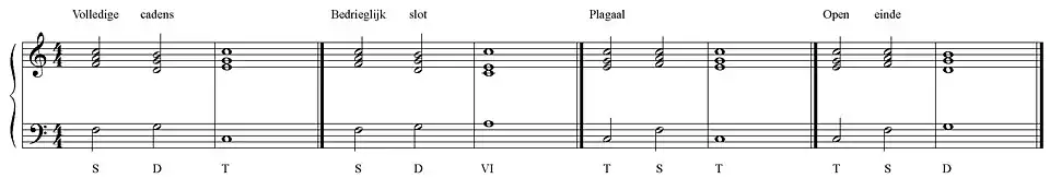 - authentiek of volledig slot: T-S-D-T (I-IV-V-I),