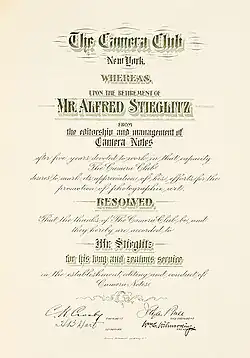 In september 1894 keerde Alfred Stieglitz terug van een Europese expositietour. Hij had geconstateerd dat de aandacht voor kunstzinnige fotografie in Europa veel groter was dan in Amerika, mede onder invloed van fotoclubs als Linked Ring in Groot-Brittannië en besloot daar iets aan te doen. Hij wendde zich tot de twee belangrijkste fotoclubs in New York, de "Society of Amateur Photographers" en de "New York Camera Club" en wist uiteindelijk te bewerkstelligen dat beide clubs zich samenvoegden, in The Camera Club of New York, met kunstfotografie als missie. Zelf werd hij vicevoorzitter.