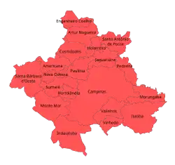 Overige steden die geografisch, historisch of economisch bij de meso-regio horen zijn: Araras, Atibaia, Bragança Paulista, Capivari, Conchal, Iracemápolis, Itu, Itupeva, Jarinu, Jundiai, Limeira, Louveira, Mombuca, Morungaba, Piracicaba, Rafard, Rio das Pedras, Salto en Tuiuti.
