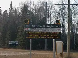 - ↑ Twee kleine stukjes land ten westen ervan (Buffalo Bay Point), en de Northwest Angle begrensd door de provincie Manitoba Canada en Lake of the Woods.