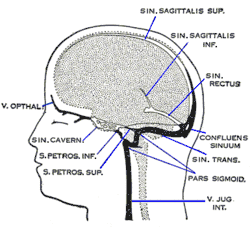 Het oppervlakkige systeem bestaat uit durale sinussen (een soort bloedholten), waarvan de wanden worden gevormd door het harde hersenvlies. Deze sinussen liggen op de oppervlakte van de hersenen, net onder het hersenvlies.