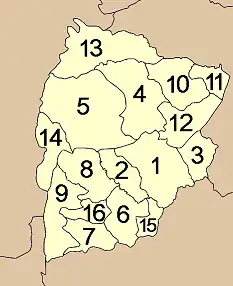 De provincie is onderverdeeld in 15 districten (Amphoe) en 1 subdistrict (King Amphoe).