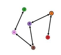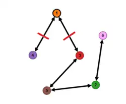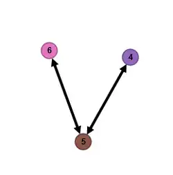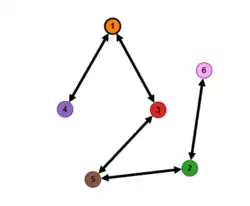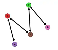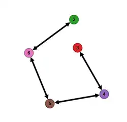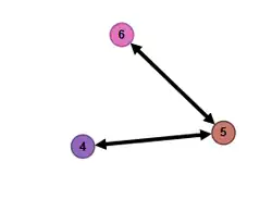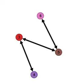 Matrix is afgeleid uit ' door rijen en kolommen 3 te verwisselen met 4, en 2 met 6. De corresponderende graaf is: