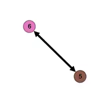 Knoop 2 heeft buren 5 en 6; dit betekent dat in de tweede kolom van de Choleskyfactor de elementen in rijen 5 en 6 niet nul zijn (naast die op de diagonaal). Knoop 2 en kde zijden 2-6 en 2-5 worden geëlimineerd en er moet een nieuwe zijde 5-6 worden toegevoegd, wat als resultaat oplevert: