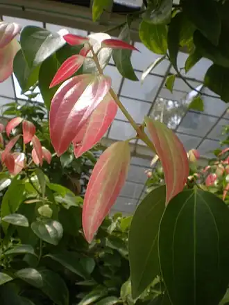 | Jonge bladeren van ceylonkaneelboom. | ||||||||||||||||