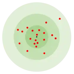 De intentie is het doel te raken, maar de kans dat de munitie daar aankomt is niet zeker. Bij een test worden veel raketten op een doel afgevuurd; vaak blijken deze rond het doel in te slaan. De meeste slaan redelijk dicht bij het doel in en de dichtheid van de inslagen neemt af naarmate de afstand tot het doel toeneemt.