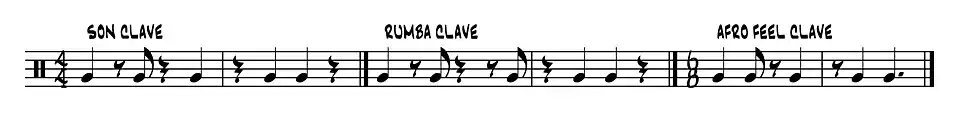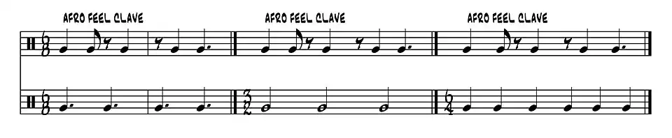 - de 6/8 clave (traditioneel nog steeds onder andere in West-Afrika gebruikt)