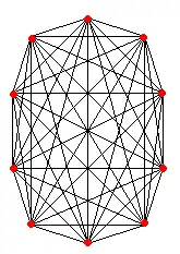 Binnen een maasnetwerk met tien knooppunten wordt ieder knooppunt met alle andere knooppunten verbonden. Het aantal verbindingen is dus gelijk aan het aantal combinaties van twee elementen uit een verzameling van tien elementen. Dit aantal is 45: