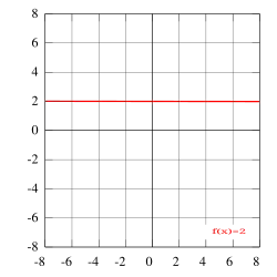 Met constant wordt bedoeld dat een grootheid een niet veranderlijke waarde heeft en niet afhankelijk is van andere parameters. De grafiek van de functie , met een willekeurige constante, ziet er in een diagram met x- en y-coördinaten uit als een horizontale lijn (zie de afbeelding hiernaast). De afgeleide van een constante functie is gelijk aan nul.