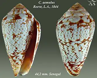 | Conus aemulus[1] Reeve, 1844 | ||||||||||||||||||