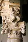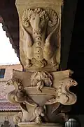 Het schitterende klooster is ongetwijfeld het belangrijkste deel van het Convento de las Dueñas. Omdat bij de constructie ervan rekening gehouden moest worden met de al bestaande gebouwen, heeft het de vorm gekregen van een onregelmatige vijfhoek, waarvan de kleinste kant slechts twee bogen telt. Het heeft twee verdiepingen en is architectonisch verwant aan het werk van Rodrigo Gil de Hontañón. De onderkant heeft brede bogen op zuilen en medaillons met hoofden in de zwikken. Op de bovenste verdieping staan de zuilen veel dichter op elkaar en is de versiering veel weelderiger. De kapitelen, van een onbekende kunstenaar, hebben een eindeloze fantasie en afwisseling. Fabeldieren en duivels worden in alle mogelijke combinaties en houdingen afgebeeld.