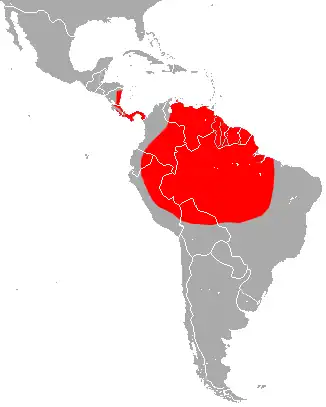De soort komt voor van Nicaragua zuidwaarts tot Peru en het midden van Brazilië.