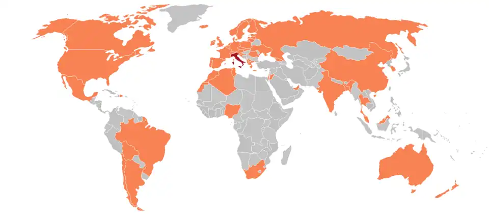 Een aantal besmettingen met het coronavirus SARS-CoV-2 is wereldwijd opgedoken, waarvan vermoed wordt dat deze in verband gebracht kunnen worden met de clusters in Noord-Italië. Per 2 maart 2020 hebben 30 landen en/of territoria bevestigde besmettingen waarvan de oorsprong in Italië lijkt te liggen.