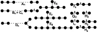 Elk diagram staat voor een Coxeter-groep. Coxeter-groepen worden geclassificeerd door hun geassocieerde diagrammen.