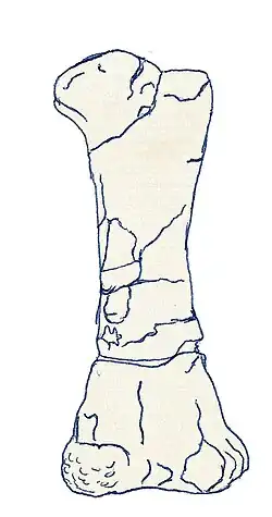 Het dijbeen heeft een lengte van ongeveer 33 centimeter. Het is zwaargebouwd met een dikke schacht en over het onderste derde deel van de schachtlengte iets naar voren gebogen. De onderste gewrichtsknobbels zijn niet gescheiden door een groeve. De gewrichtsvlakken zijn bedekt met kleine putjes voor een betere aanhechting voor het kraakbeen. Het gaat om een volwassen exemplaar. Seeley dacht echter vanwege de geringe afmetingen dat het nog lang niet uitgegroeid was; het ontbreken van epifysen, sectoren van snelle groei in de botuiteinden, zag hij als een teken van een trage stofwisseling en dus koudbloedigheid.