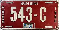 | 1957 | wit op rood | C-9999 | Eerste plaat met tekst "CURACAO, N.A."[18] | |