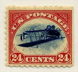 Na een paar experimentele vluchten zou de U.S. Post Office op 15 mei 1918 een reguliere luchtpostverbinding openen tussen Washington, Philadelphia en New York. Voor het hoge tarief van 24 dollarcent zou een luchtpostzegel worden gedrukt in de (nationale) kleuren rood en blauw met een afbeelding van de dubbeldekker Curtiss Jenny, een vliegtuig dat toen voor luchtpostvervoer werd gebruikt. Het ontwerp en het drukken van de postzegel gebeurde in grote haast. De graveur kon op 4 mei beginnen; het drukken begon op vrijdag 10 mei; de eerste aflevering aan de posterijen was op 13 mei.