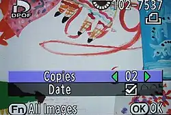 DPOF bestaat meestal uit een set van tekstbestanden in een speciale map op de opslag-kaart. Deze optie kan worden bereikt via een van de menu-opties van de camera. De opslag-kaart kan vervolgens worden meegenomen naar een printshop (drukkerij) of thuis worden afgedrukt met een compatibele desktopprinter.
