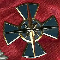Het kleinood is een grijs geëmailleerd rond kruis met ronde armen. In de armen is bij de aan linten gedragen kruizen een dubbele ring met twee gouden ballen, gelijkend op kogellagers, geplaatst. Op het kruis ligt een ster met vier lange en vier korte stralen.