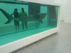 Hirsts bekendste werken betreft dieren (onder meer een tijgerhaai, schaap en een koe) die in een aquarium zijn gepreserveerd in formaldehyde. Vaak dragen deze werken een lange titel, die niets te maken heeft of lijkt te hebben met het afgebeelde dier. De installatie met de haai (1991) heet bijvoorbeeld The Physical Impossibility of Death in the Mind of Someone Living (vrij vertaald: De fysieke onmogelijkheid van de dood in de geest van iemand die leeft). Dit werk werd begin jaren tachtig aangekocht door de Britse kunstverzamelaar Charles Saatchi en in 2004 voor £ 6,5 miljoen (€ 9,3 miljoen) doorverkocht aan Hedgefonds-manager Steven Cohen. Daardoor verdiende Saatchi niet alleen € 9.225.000, maar promoveerde Damien Hirst ook tot de op een na duurste nog levende kunstenaar van dat moment (op Jasper Johns na).