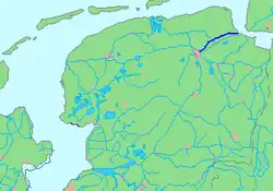 Aan het Damsterdiep liggen: Groningen, Oosterhoogebrug, Ruischerbrug, Garmerwolde, Ten Boer, Ten Post, Winneweer, Garrelsweer, Wirdumerdraai, Eekwerderdraai, Tjamsweer, Appingedam, Solwerd, Tuikwerd en Delfzijl.