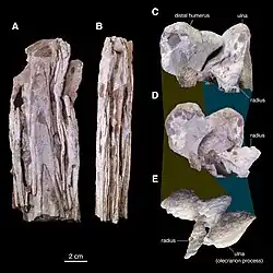 Bij de ellepijp is de processus olecrani, die de arm strekt, lang maar relatief slank met een hoogte die gelijk is aan de breedte van het onderste opperarmbeen. Het spaakbeen is relatief slank.