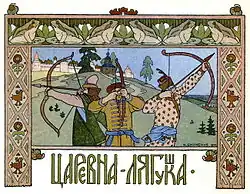 Wassilissa is door haar vader, Kostjej Bessmertni voor drie jaar in een kikvors veranderd, omdat hij jaloers is op haar wijsheid. Als de drie zonen van de tsaar een vrouw moeten huwen en pijlen afschieten om haar te vinden, belandt Iwans pijl bij de betoverde kikvors. Zij moet zijn vrouw worden. De andere broers zullen een bojarendochter en een koopmansdochter trouwen. De tsaar geeft drie opdrachten aan de nieuwe schoondochters: een brood bakken, een tapijt weven en verschijnen aan het banket. De kikvorsprinses bakt het lekkerste brood, weeft het mooiste tapijt en tijdens het banket, als ze haar kikvorshuid thuis bewaart, laat ze uit haar linkermouw een meer voortkomen en uit haar rechtermouw witte zwanen die op het meer zwemmen. Haar schoonzussen proberen net als haar de afgekloven botjes van zwanenvleugels in hun ene mouw en drank in hun andere mouw te verbergen, maar als zij dansen en hun mouwen openen wordt iedereen nat en vliegt een botje in het oog van de tsaar.