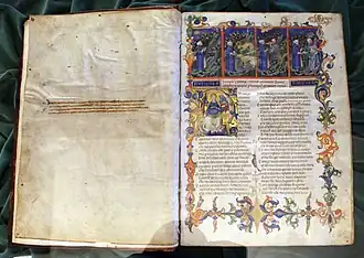 • Milaan, Bibliotheca dell’Archivio Storico Civico e Trivulzina, ms. 1080, is het oudste verluchte handschrift. Het werd gemaakt in Florence in 1337.[76] Dit handschrift werd gemaakt in het atelier van Francesco di ser Nardo da Barberino