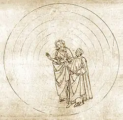 Ook de fysica komt aan bod in Dantes werk.[37] Het bevat talrijke observaties van natuurverschijnselen die met de nauwkeurigheid van een wetenschapper worden waargenomen en beschreven.[37] In het laatste deel, Paradiso, beschrijft hij zelfs een experiment,[38] voorgesteld door Beatrice, met de weerkaatsing van een lichtbron in drie spiegels,[39] in de discussie over de verklaring van de vlekken op de maan.[40]