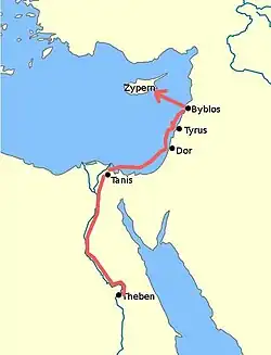 Het verhaal speelt zich af in de 21e dynastie, tijdens de regering van Herihor in Thebe en Smendes, farao van de 21e dynastie uit Tanis. Het is geen echt verhaal, het is eerder een rapport of een verslag van een missie waar de hoge functionaris Wenamoen werd belast.