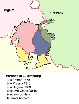 Tijdens de Frans-Spaanse Oorlog van 1635 tot 1659 wisten de Fransen met hun bondgenoot Engeland de Spanjaarden te verslaan en grote delen van de Spaanse Nederlanden te bezetten. In de daaropvolgende Vrede van de Pyreneeën kon Frankrijk dan ook delen van het toenmalige hertogdom Luxemburg opeisen, aangezien dit deel uitmaakte van de Spaanse Nederlanden en de koning van Spanje tevens hertog van Luxemburg was. De vestingen Stenay, Thionville en Montmédy, Frans-Luxemburg, werden Frans bezit. Luxemburg verloor 1060 km², ongeveer 10% van het toenmalige grondgebied.