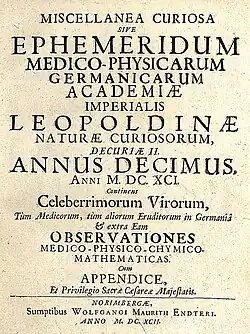 De Leopoldina werd op 1 januari 1652 gesticht in Schweinfurt onder de naam Academia Naturae Curiosorum. De vier eerste leden waren allen arts, namelijk Johann Laurentius Bausch (het eerste hoofd van de academie), Johann Michael Fehr, Georg Balthasar Metzger en Georg Balthasar Wohlfarth. In 1670 begon het genootschap de Ephemeriden uit te geven, het eerste medische en wetenschappelijke tijdschrift ter wereld.