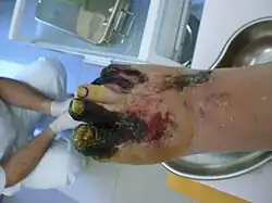 - ↑ http://nhg.artsennet.nl/web/show/search?searchstring=DIABETISCHE+VOET&id=243540&domain=NHG&filter=&googlefilter=&q=DIABETISCHE+VOET&from=0&to=10&partialfields=&sortby= Diabetische voet; Gorter, 2003; UMCU. Gearchiveerd op 22 juni 2023.