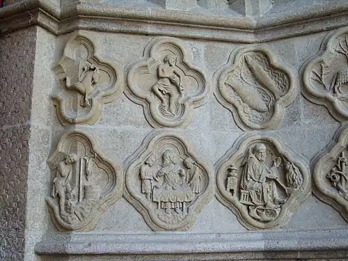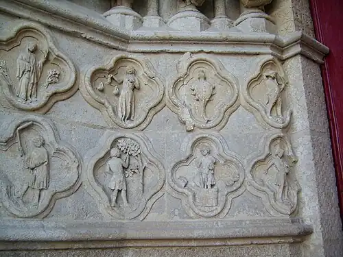 De linker grondmuur van het Saint-Firminportaal