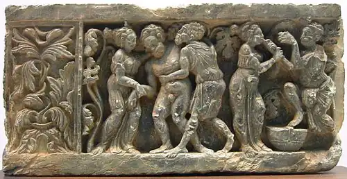 Bacchanalische scene (1e-2e eeuw n.Chr., Grieks-Boeddhistische kunst van Gandhara).