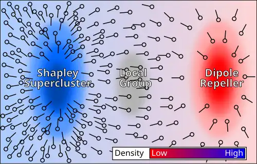- ↑ Yehuda Hoffman, Daniel Pomarède, R. Brent Tully, Hélène M. Courtois, « The dipole repeller », Nature Astronomy, no 1, 30-01-2017 (DOI 10.1038/s41550-016-0036)