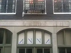 Gevelinscriptie ter herdenking van Coornherts geboorteplek in Amsterdam (gevel van Warmoesstraat 111)