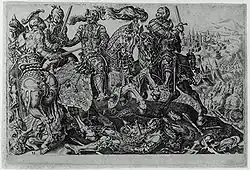 Karel V verovert Tunis, uit een serie afbeeldingen, ontworpen door Heemskerck en door Coornhert gegraveerd. De serie werd in Karel van Manders Schilder-boeck genoemd.
