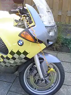Een Disc Lock Reminder is een kabeltje dat van een schijfremslot naar het stuur van een motorfiets loopt om de berijder eraan te herinneren dat zijn motor nog op slot staat.