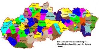 Er zijn 79 districten van Slowakije (okresy), de hoofdstad Bratislava is verdeeld in 5 districten en de stad Košice in 4 districten. De districten zijn genoemd naar de grootste plaats in het district.
