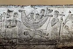 Op de zijden van het vierkante bekken zijn bas-reliëfs aangebracht: