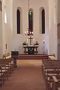 De dorpskerk heeft de Tweede Wereldoorlog grotendeels ongeschonden doorstaan. Bij de restauratie tussen 1953 en 1958 werd de patroonsloge verwijderd en werden twee vensters rond het koor geplaatst. De muurschilderingen uit de art nouveau van Bruno Möhring werden verwijderd door eroverheen te schilderen. De ramen van de apsis zijn opnieuw beschilderd met glaskunst, rond het thema van het scheppingsverhaal door kunstenaar Georg Lippmann.