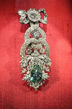 Hofgoudsmid Johann Friedrich Dinglinger liet de steen incorporeren in een Orde van het Gulden Vlies. Hofjuwelier Franz Michael Diespach vervaardigde in opdracht van Frederik August III in 1768 uit deze orde weer twee sieraden, een daarvan met de Groene diamant. Er zitten in het sieraad twee grote briljant geslepen diamanten van 6,3 en 19,3 karaat en 411 middelgrote en kleine briljant geslepen diamanten, gegroepeerd in een 14,1 cm hoge sluiting. Deze hoedversiering werd onderdeel van de Saksische kroonjuwelen. De Russen hebben de diamant in 1945 na de Tweede Wereldoorlog als oorlogsbuit mee naar de Sovjet-Unie genomen, maar in 1958 weer teruggegeven.